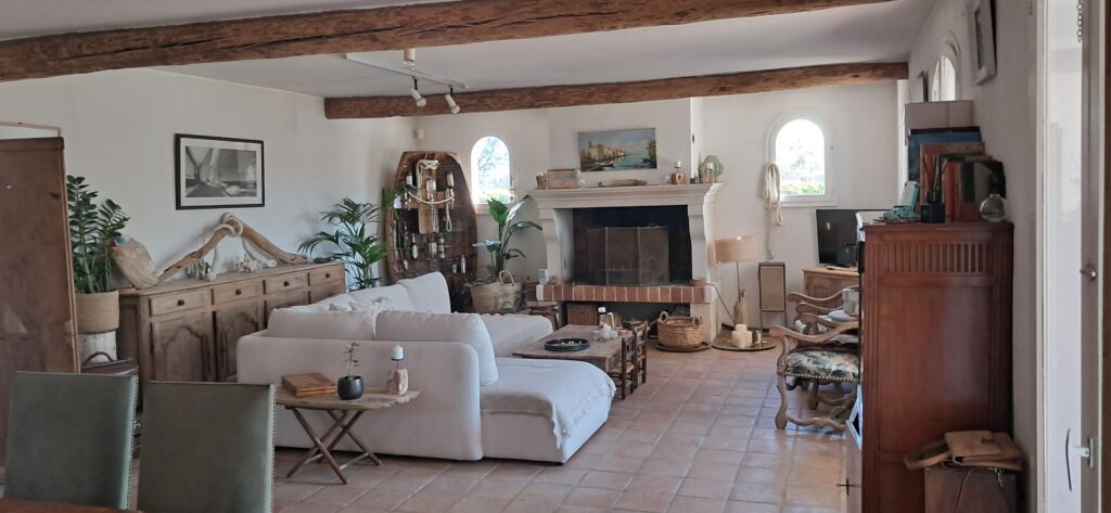 Un grand salon de 60 mètres carrés, offrant un espace généreux où élégance et confort se rencontrent. Baigné de lumière grâce à de larges ouvertures sur le jardin et sa véranda, il se compose de matières nobles, de teintes douces et d’un mobilier soigneusement choisi. Un lieu sophistiqué, pensé pour la détente et la sérénité.